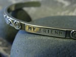 Beautiful designs sculpted along the sides of this solid sterling silver bracelet and the words "My Friend" are handstamped on the top. On the inside are the words "You are the sister I wish I had".